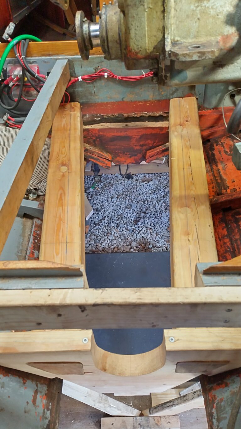 Vagnarna hålls ihop av ett stycke gammal bergborr. Vinschen skall klara att lyfta 1 ton.